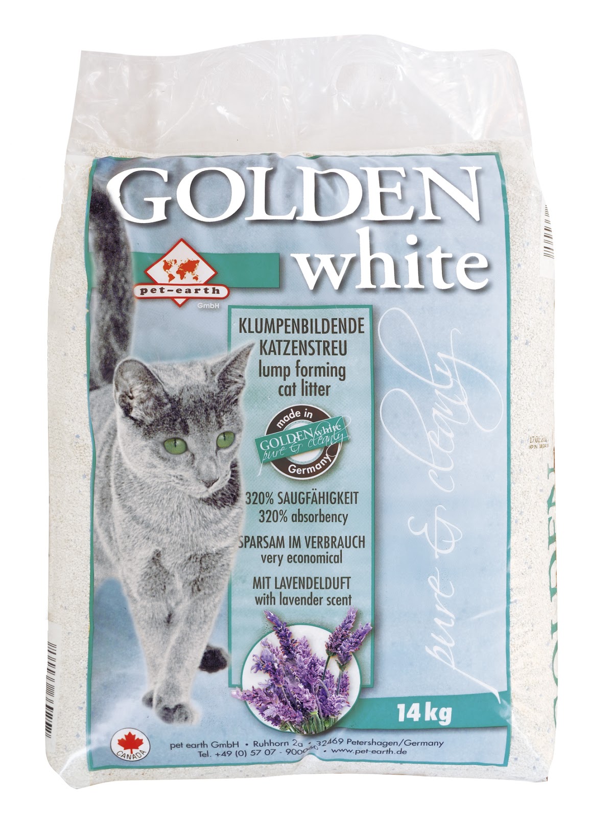 Te presentamos la nueva arena aglomerada blanca para gatos con un ligero olor a lavanda.