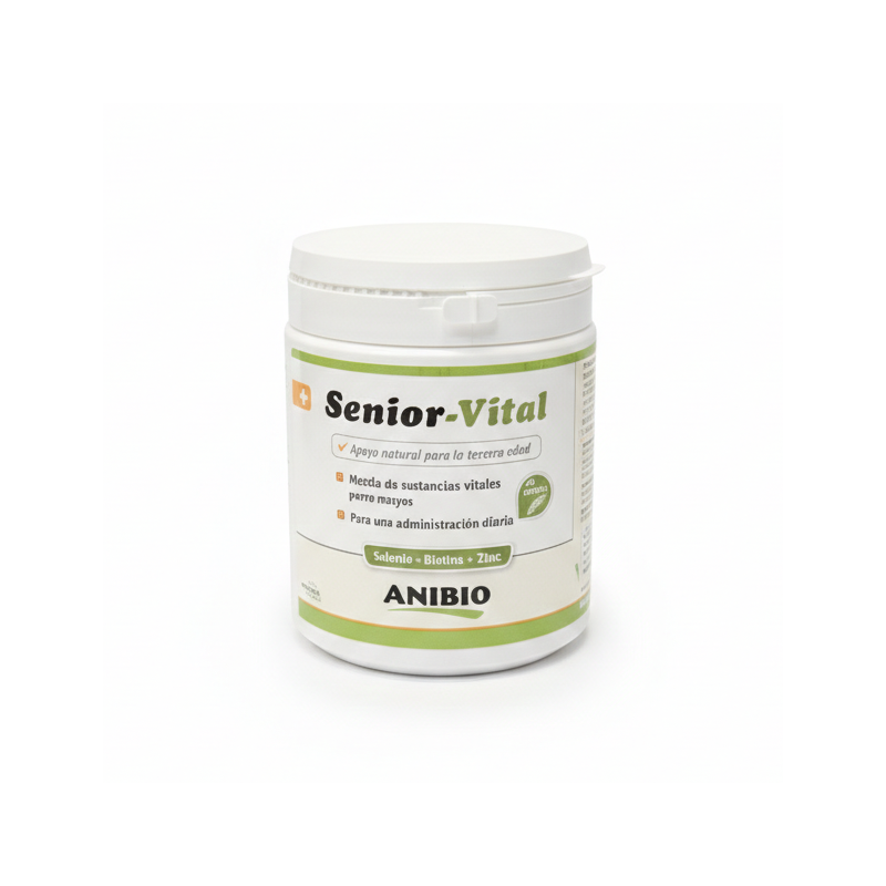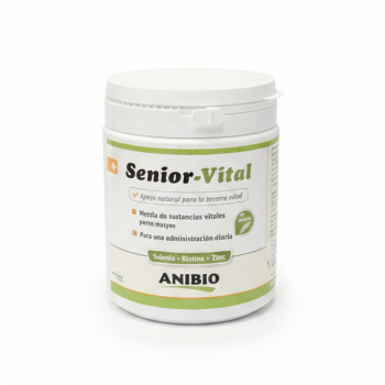 ANIBIO Senior-Vital constituye la base de una alimentación sana y adecuada para la especie de los perros mayores. Esta mezcla de sustancias vitales de plantas medicinales reconocidas, naturales y efectivas sirve como un complemento específico y de alta calidad para la dieta y también es ideal para las comidas BARF.