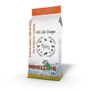 Composición: maíz liberado, polvo de hemoglobina, trigo liberado, arroz liberado, harina de carne, grasa de vaca, suero de leche en polvo, levadura de cerveza, fibras vegetales, aceite de girasol prensado en frío, minerales, 1% de aceite de salmón escocés, lecitina, inulina, vitaminas y oligoelementos.